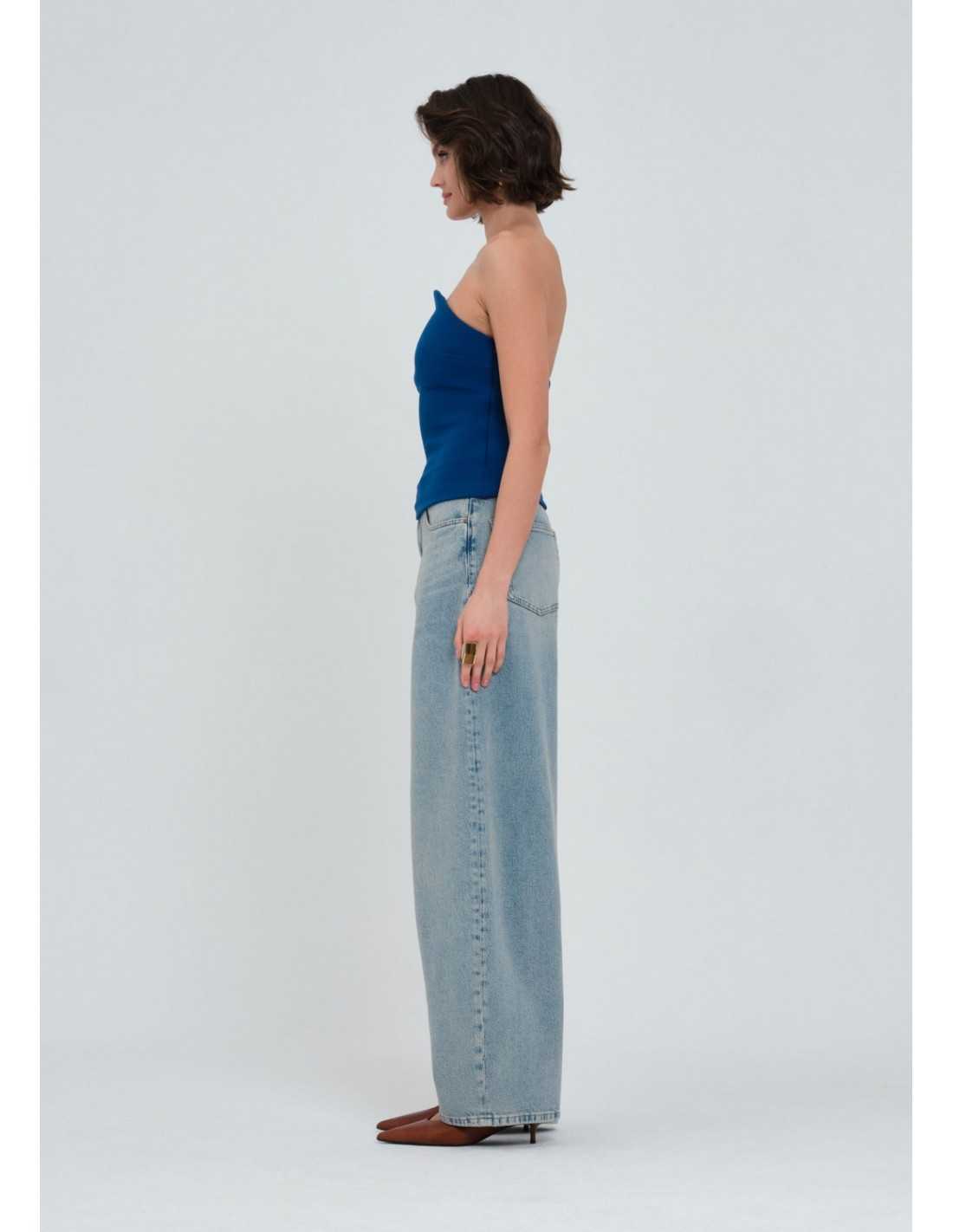 Трендовые BAGGY свободного кроя из хлопкового денима светло-голубого цвета.