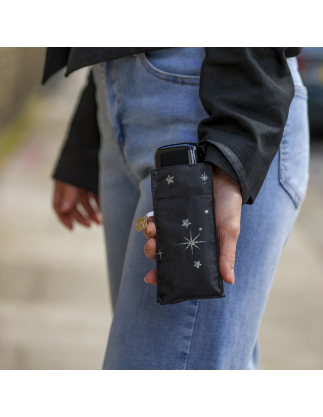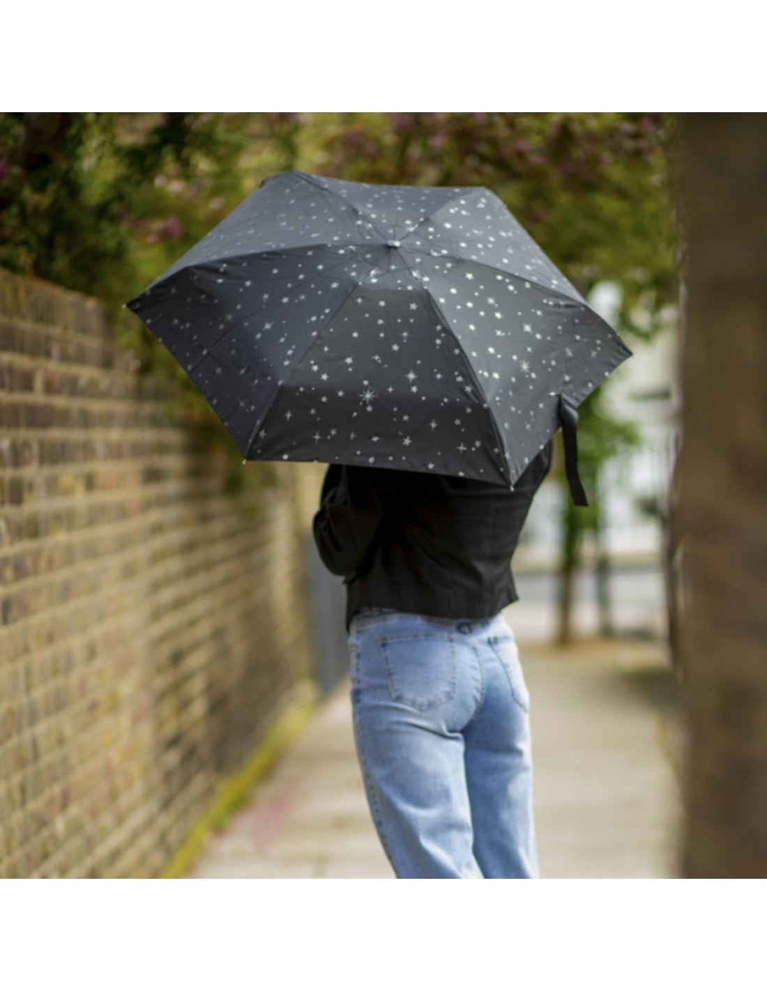 L501-4409 GlitterStarsblack (Блестящие звезды) Зонт женский механика Fulton